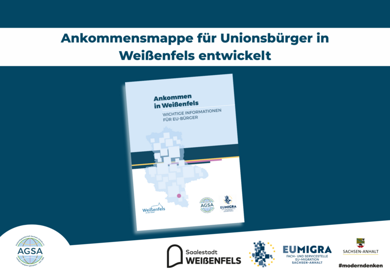 In gemeinsamer Zusammenarbeit mit der Stadt Weißenfels hat die EUmigra der AGSA eine Ankommensmappe entwickelt, die sich an Unionsbürgerinnen und Unionsbürger richtet, die neu im Burgenlandkreis ankommen.