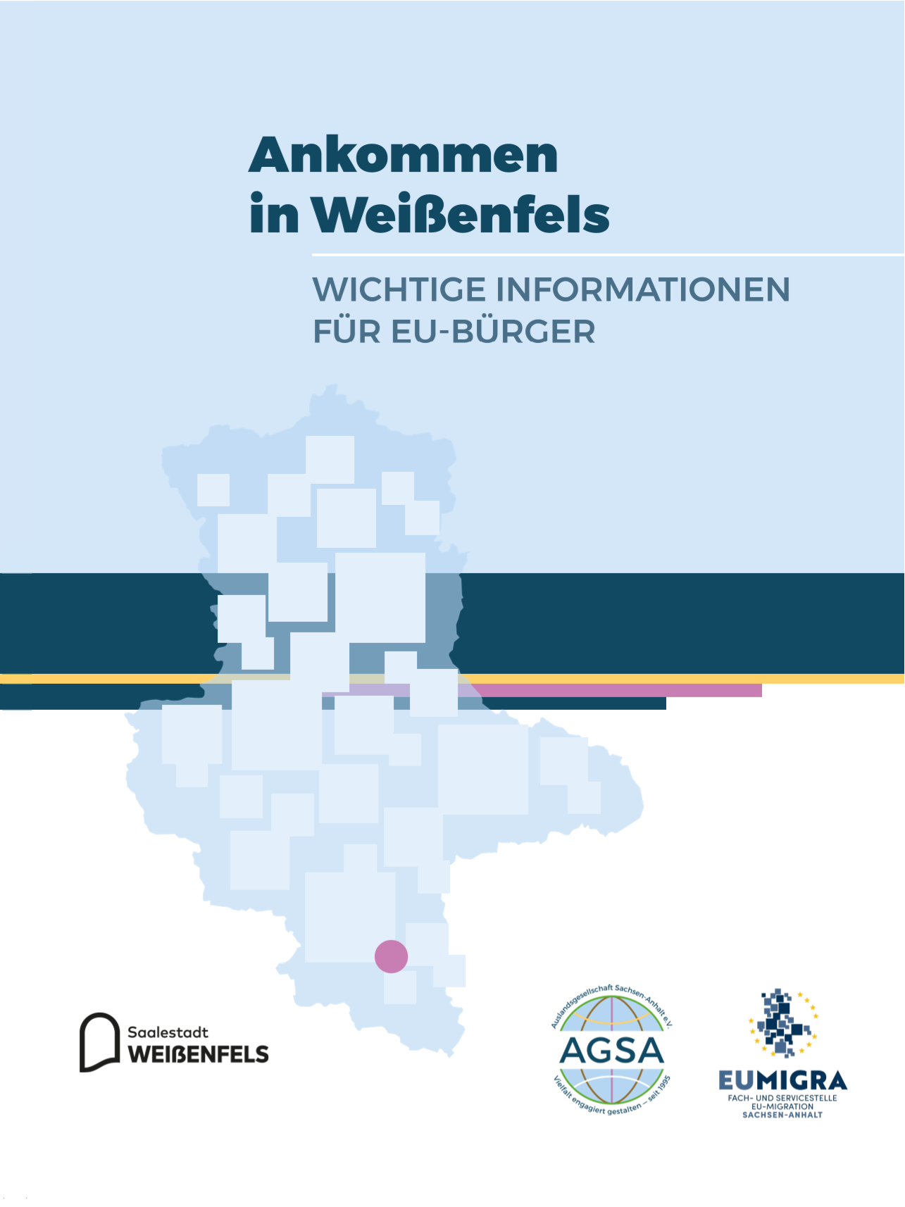 Das Informationsmaterial wurde gemeinsam vom AGSA- und Landesprojekt „Fach- und Servicestelle EU-Migration Sachsen-Anhalt“ und dem Team des Bürgerzentrums der Stadt Weißenfels erarbeitet. Ab sofort wird die Handreichung im Rahmen des Modellprojekts „Weißenfelser Weg“ bei den Ankunftsgesprächen ausgegeben.
